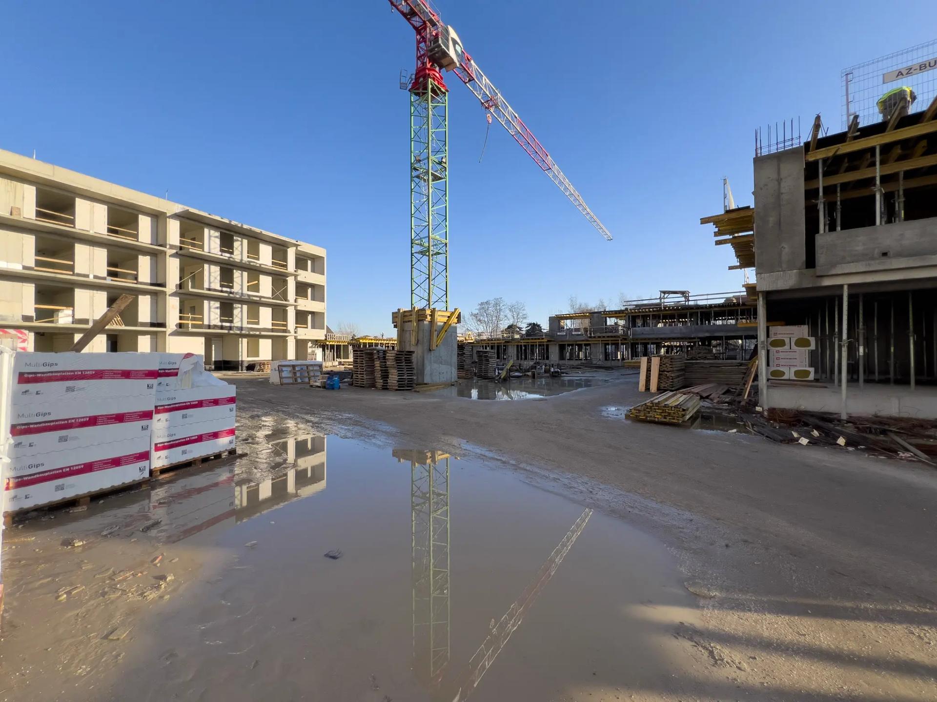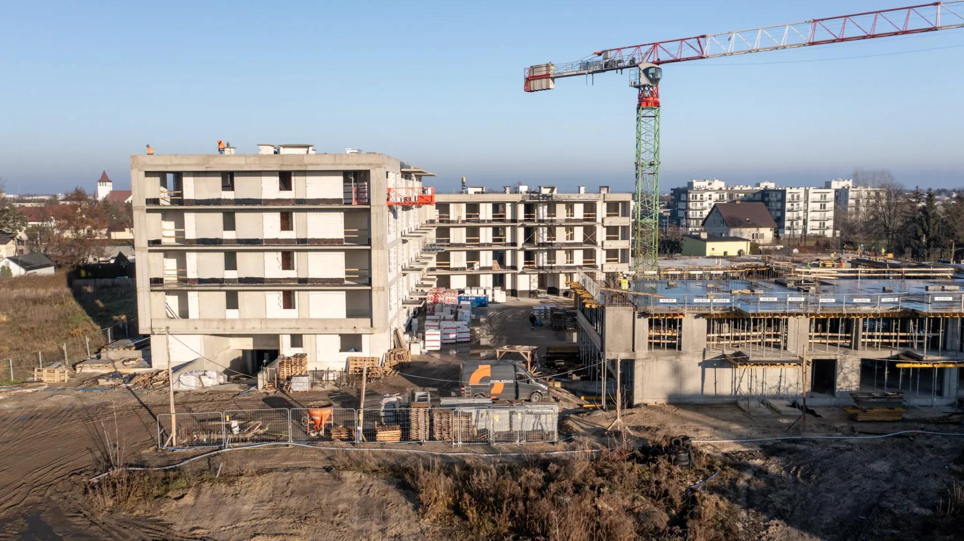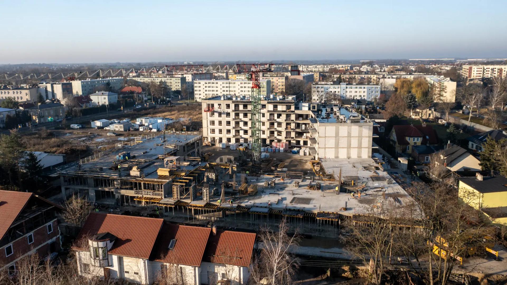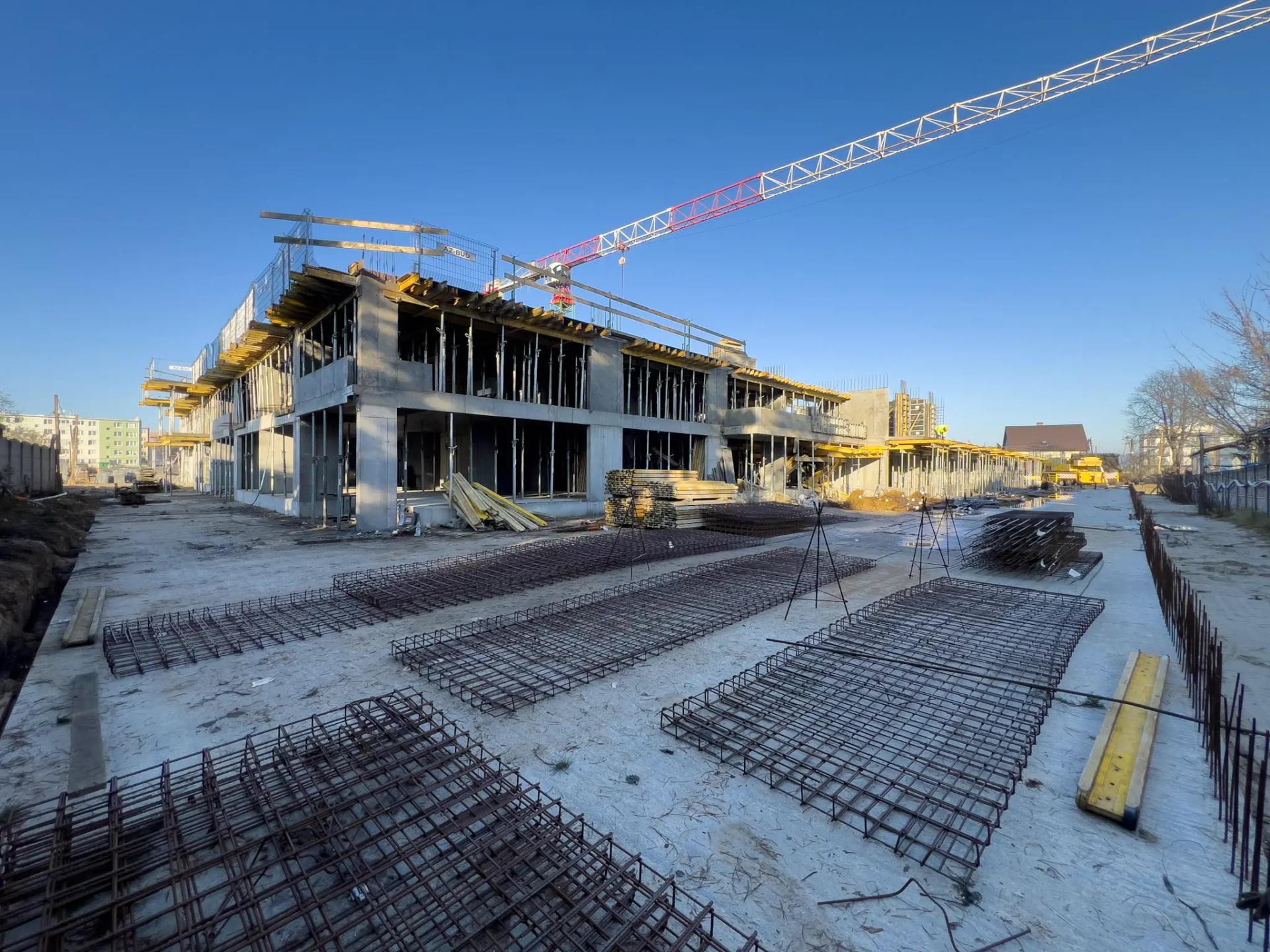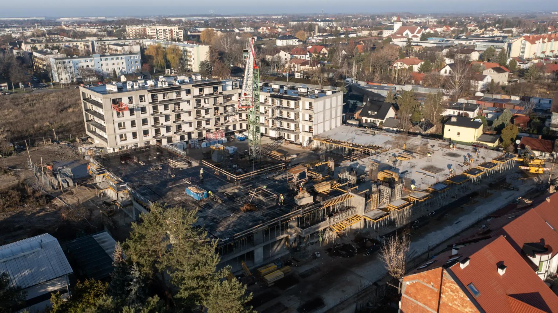 W budynku A rozpoczęto izolowanie balkonów i loggii. Trwa montaż instalacji elektrycznej w lokalach i częściach wspólnych oraz instalacji sanitarnych w garażu. Kontynuowane jest zamurowywanie szachtów instalacyjnych. W budynku B zakończono prace nad stropem parteru, a obecnie trwa wykonanie stropu nad pierwszym piętrem.