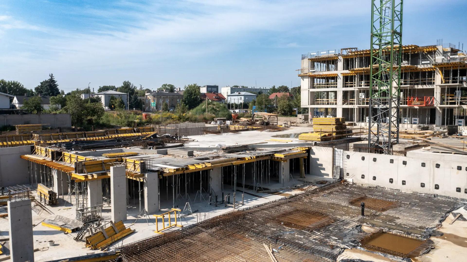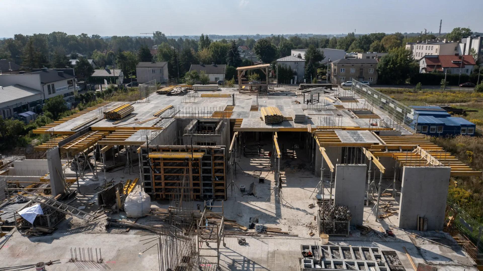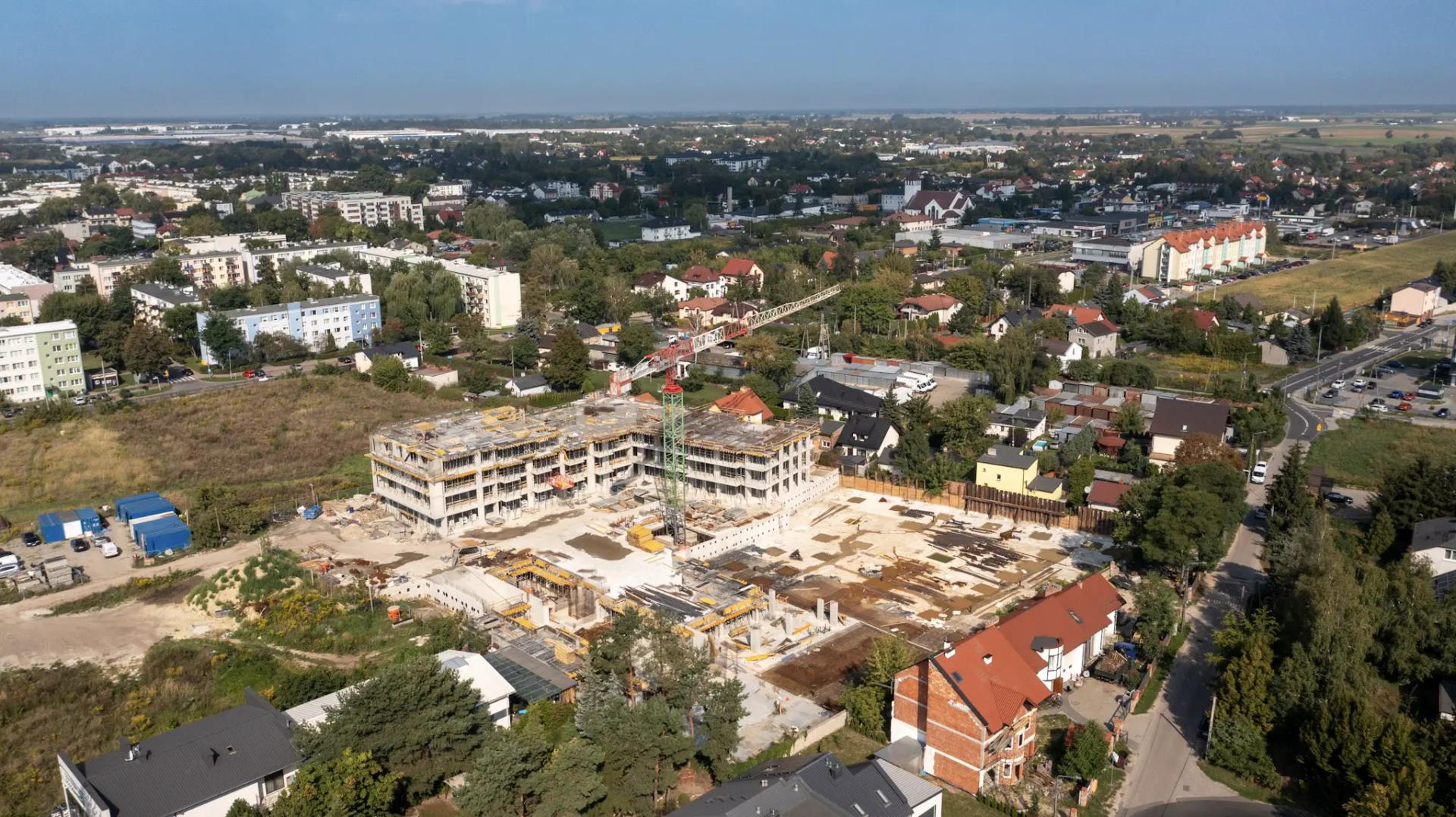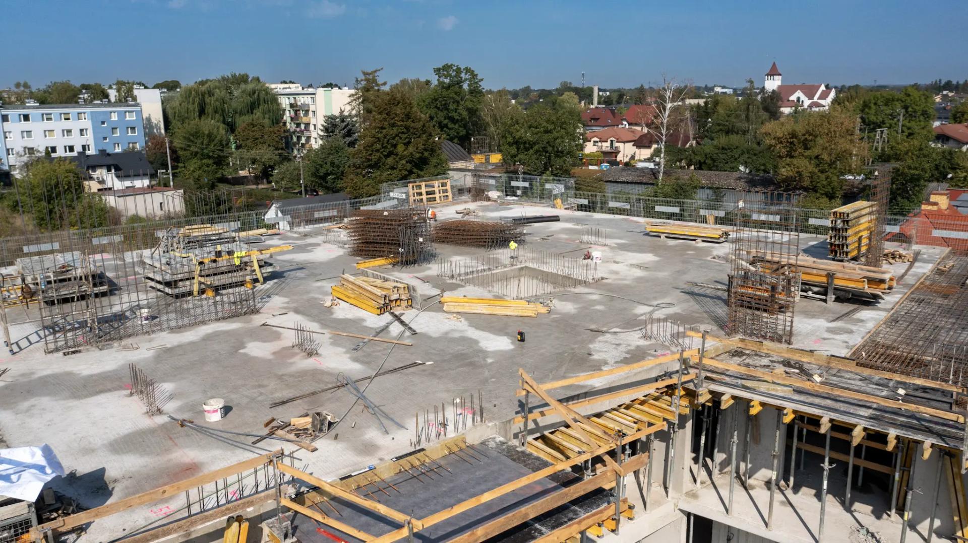 Zakończono prace związane z wykonaniem konstrukcji kondygnacji trzeciej budynku A i rozpoczęto prace murarskie. W dalszym ciągu trwają prace związane z wykonaniem płyty fundamentowej oraz ścian podziemia i stropu nad garażem w budynku B.