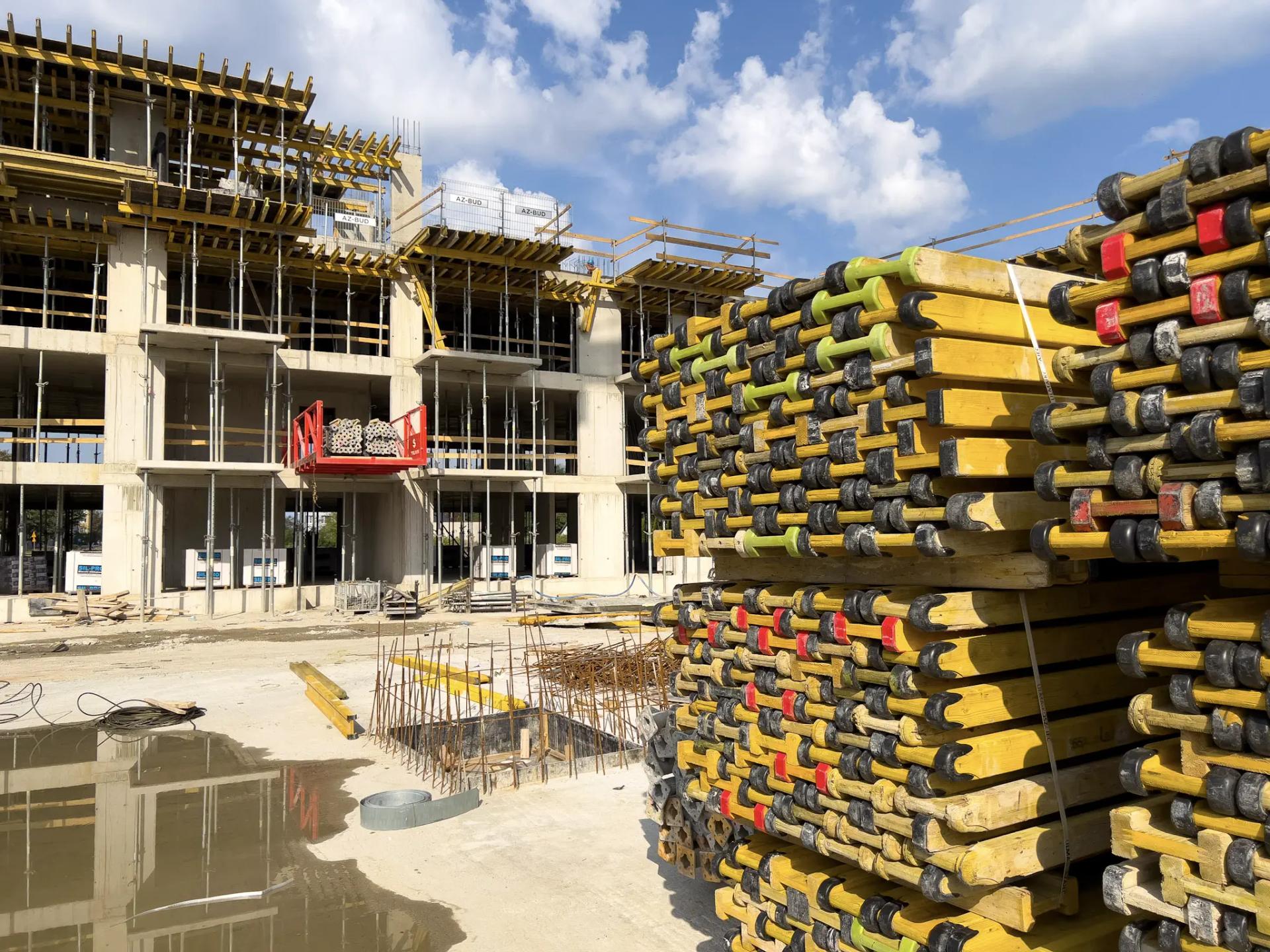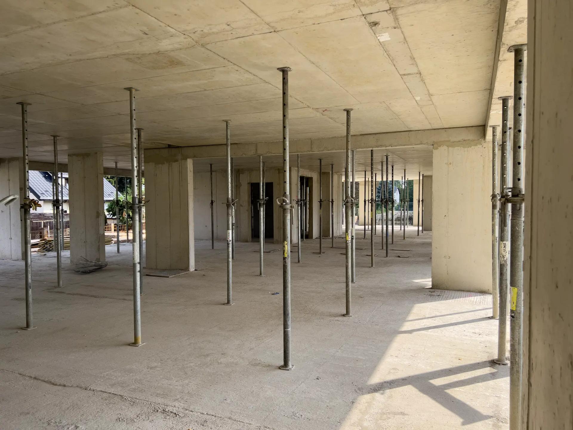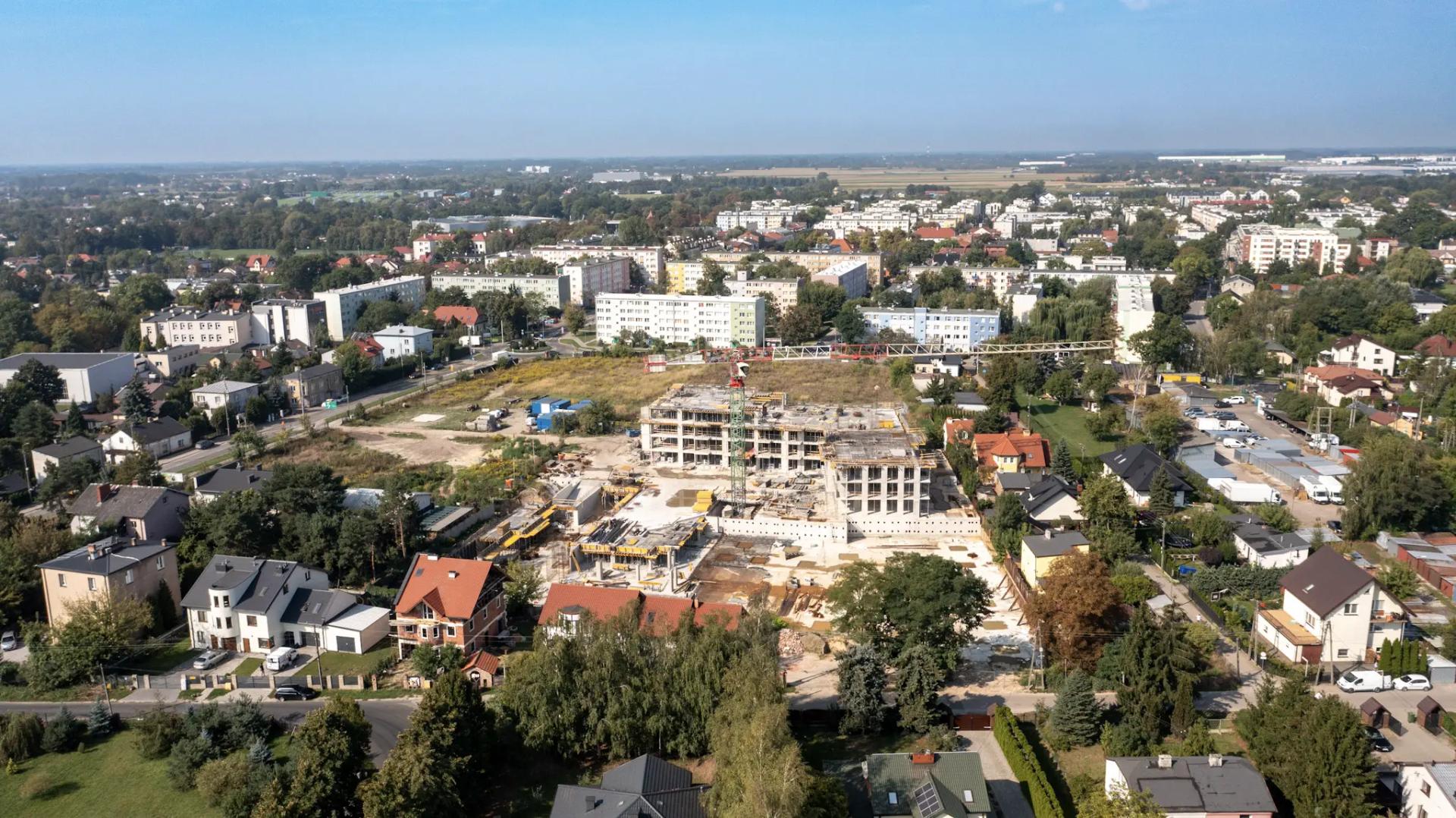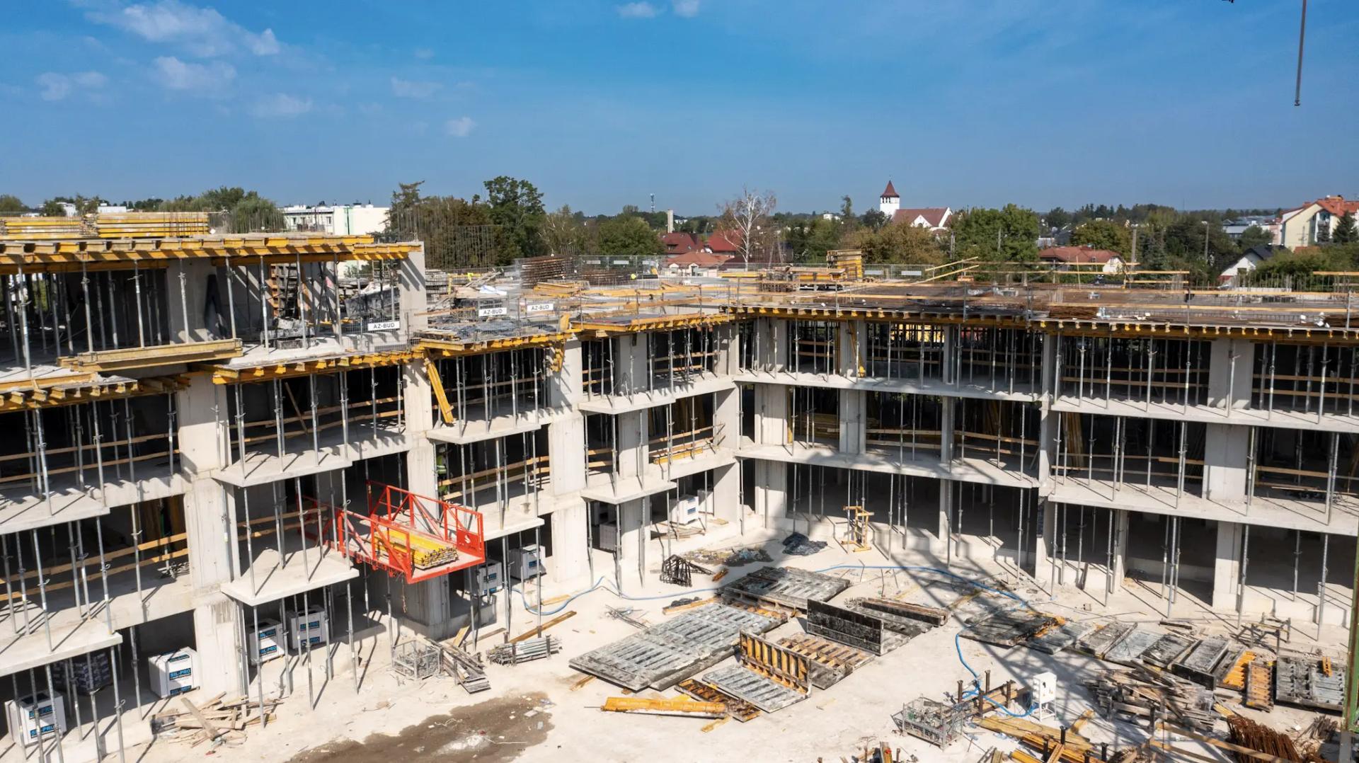 Zakończono prace związane z wykonaniem konstrukcji kondygnacji trzeciej budynku A i rozpoczęto prace murarskie. W dalszym ciągu trwają prace związane z wykonaniem płyty fundamentowej oraz ścian podziemia i stropu nad garażem w budynku B.