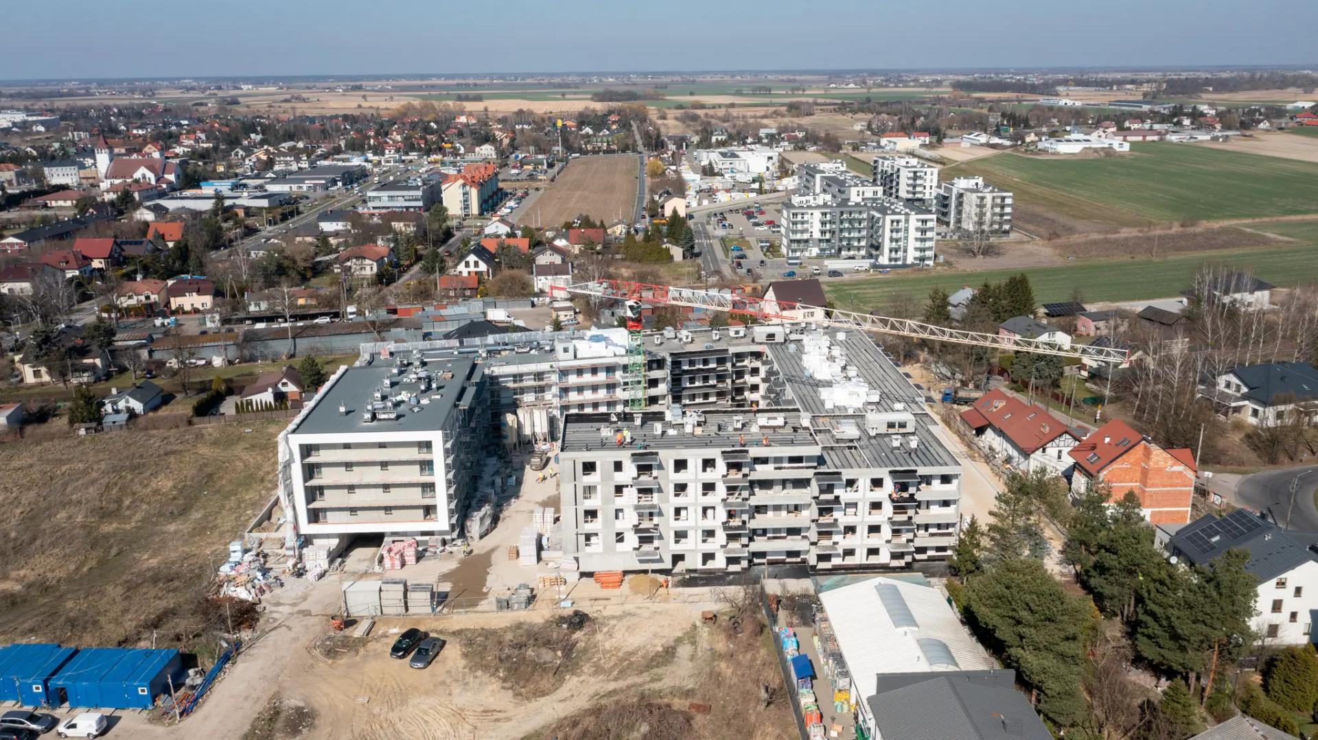 Budynek A: Zakończono prace na elewacjach zachodniej i północnej a obecnie prowadzone są prace na elewacjach południowej i wschodniej od strony dziedzińca. Zamontowane zostały uchwyty do balustrad balkonowych. Trwają prace tynkarskie zarówno w lokalach, jak i w częściach wspólnych budynku. Budynek B: Zakończono wznoszenie ścian międzylokalowych, osłonowych i korytarzowych. Obecnie trwa wznoszenie ścianek działowych w lokalach. Rozpoczęto montaż stolarki okiennej oraz izolację przeciwwodną dachów, tarasów, balkonów i loggi. Zakończono prace izolacyjne garażu i rozpoczęto prace na elewacji południowej.