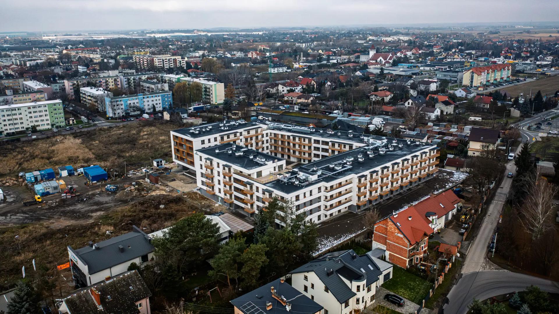 Z radością informujemy, że pace na terenie naszej inwestycji zbliżają się ku końcowi, a postępy z ostatnich tygodni pozwalają z optymizmem patrzeć na zbliżający się termin zakończenia. W końcowej fazie są prace związane z montażem portali wejściowych oraz zabudów meblowych na dwóch ostatnich klatkach schodowych. Równocześnie zakończyliśmy wszystkie zaplanowane prace brukarskie w otoczeniu budynków. Co istotne, zjazd z drogi wojewódzkiej został wykonany i pomyślnie odebrany przez MZDW. Budynki posiadają już wszystkie niezbędne media do funkcjonowania. Trwają intensywne rozruchy i próby wszystkich instalacji: system centralnego ogrzewania, wentylacji i zabezpieczeń przeciwpożarowych. Ostatnie formalności to montaż docelowych liczników energii elektrycznej oraz oczekiwanie na wyniki badań bakteriologicznych wody. Jesteśmy na ostatniej prostej. Kompletujemy dokumentację podwykonawczą, by niebawem złożyć wniosek o oficjalny odbiór budynków przez odpowiednie służby. Finał realizacji inwestycji jest już na wyciągnięcie ręki!