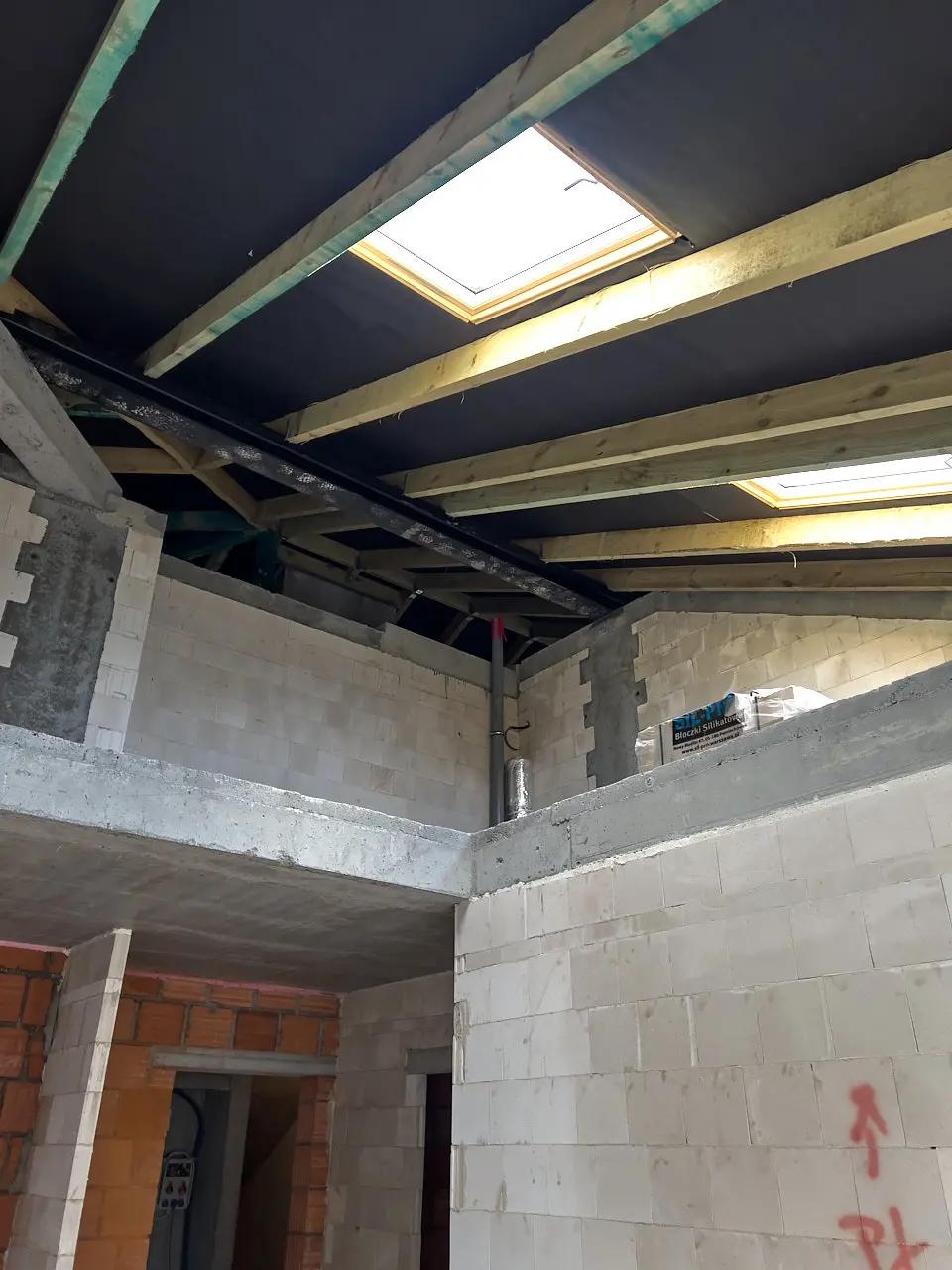 Zakończyliśmy prace murarskie oraz montaż pokrycia dachowego. Postępują prace związane z wykonaniem instalacji sanitarnej. Przygotowujemy się do wykonania izolacji termicznej budynku.