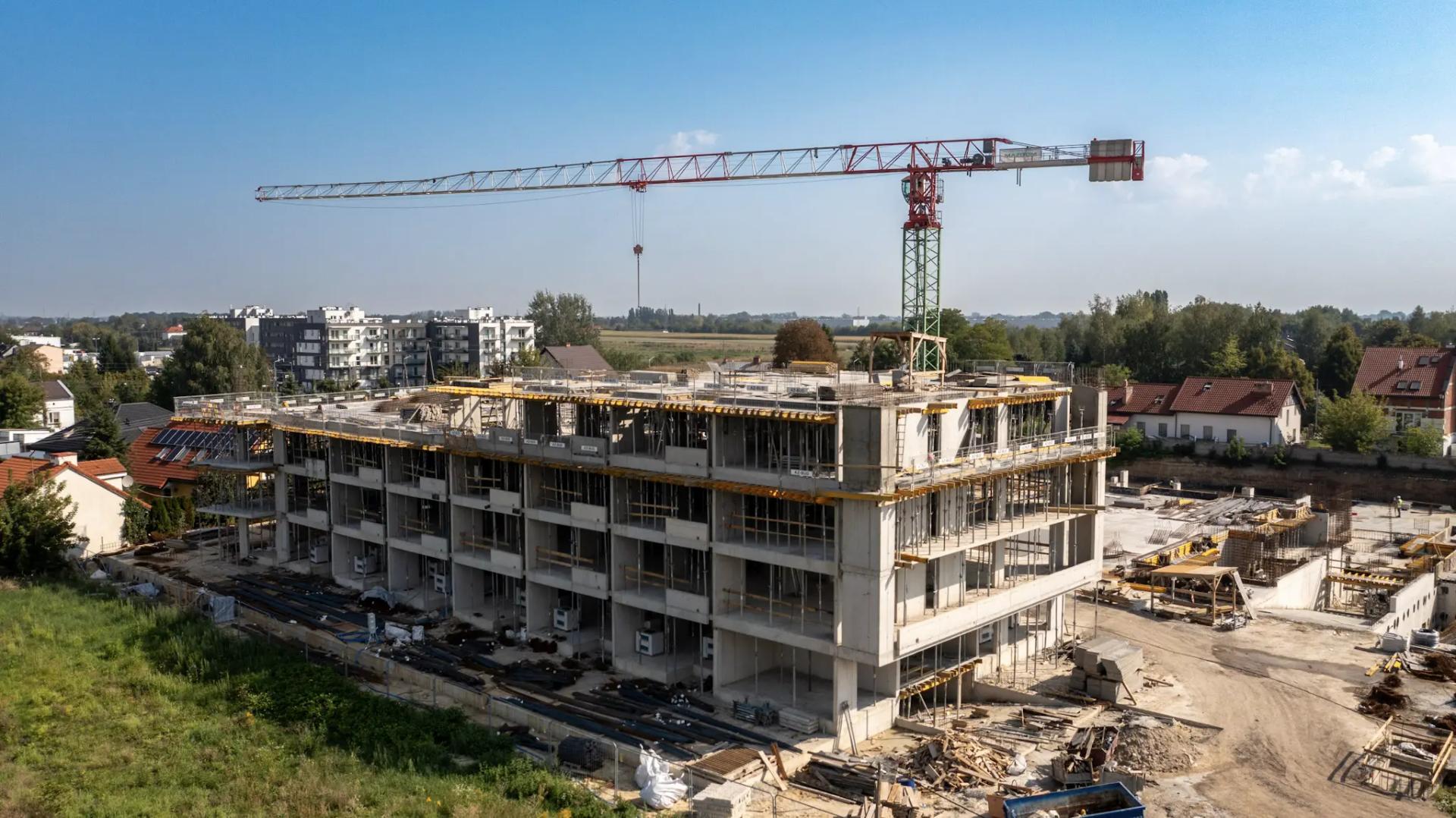 Zakończono prace związane z wykonaniem konstrukcji kondygnacji trzeciej budynku A i rozpoczęto prace murarskie. W dalszym ciągu trwają prace związane z wykonaniem płyty fundamentowej oraz ścian podziemia i stropu nad garażem w budynku B.