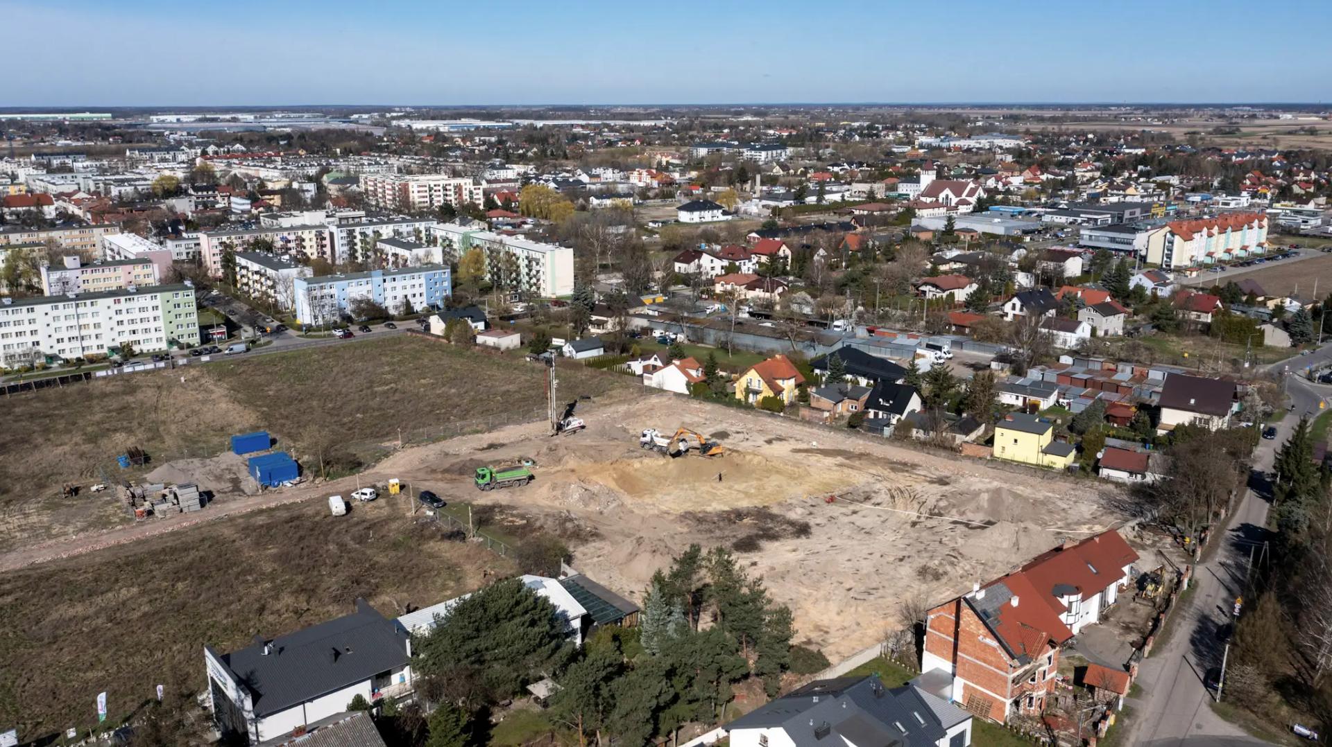 Rozpoczęliśmy prace związane z wykopem oraz zabezpieczeniem jego ścian. Wylany został pierwszy beton podkładowy. Trwają prace zbrojarskie nad częścią płyty fundamentowej.