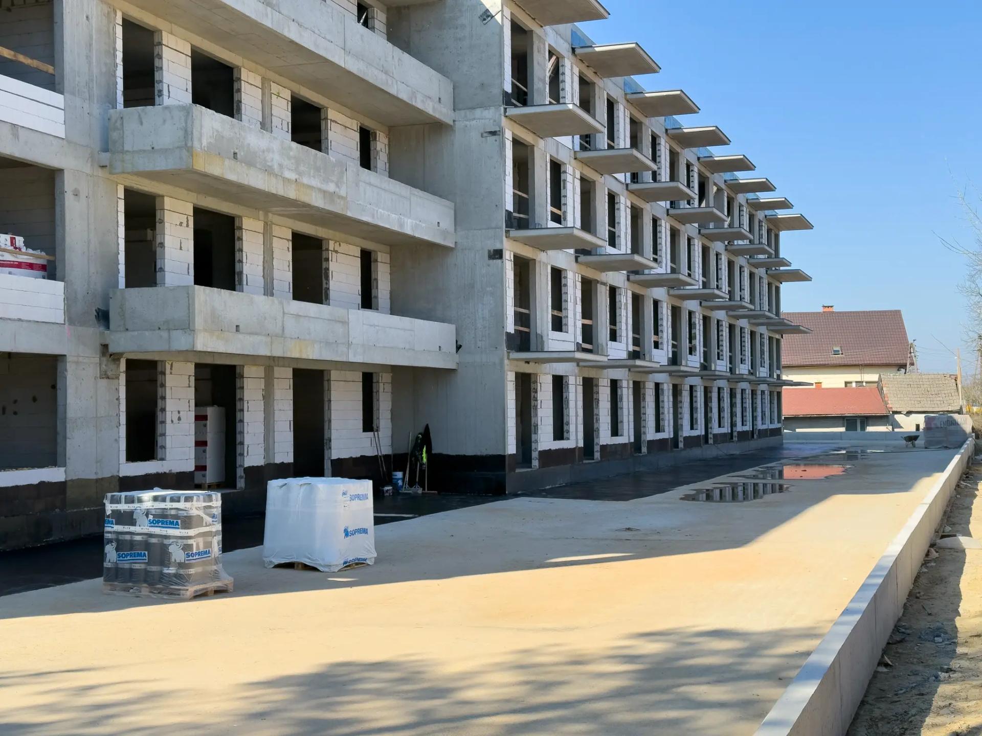 Budynek A: Zakończono prace na elewacjach zachodniej i północnej a obecnie prowadzone są prace na elewacjach południowej i wschodniej od strony dziedzińca. Zamontowane zostały uchwyty do balustrad balkonowych. Trwają prace tynkarskie zarówno w lokalach, jak i w częściach wspólnych budynku. Budynek B: Zakończono wznoszenie ścian międzylokalowych, osłonowych i korytarzowych. Obecnie trwa wznoszenie ścianek działowych w lokalach. Rozpoczęto montaż stolarki okiennej oraz izolację przeciwwodną dachów, tarasów, balkonów i loggi. Zakończono prace izolacyjne garażu i rozpoczęto prace na elewacji południowej.