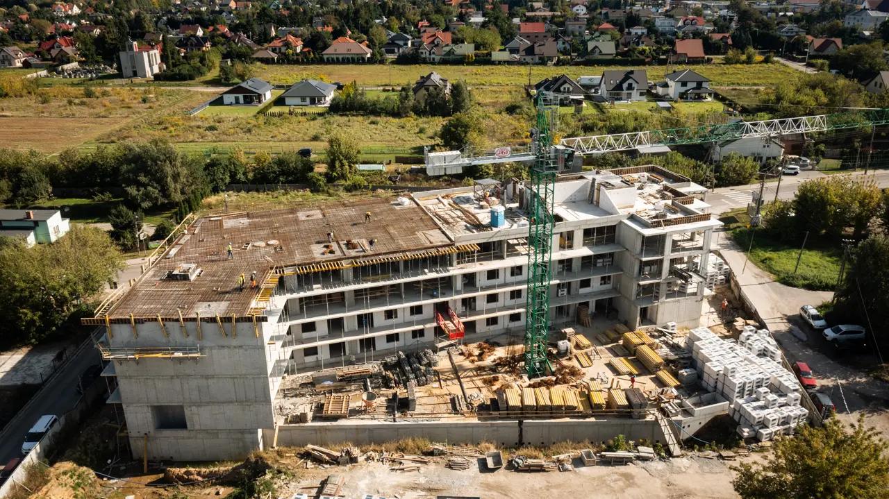 Wiecha – wykonanie konstrukcji żelbetowej w 100 %. Trwają prace murarskie. Rozpoczynamy wykonanie więźby dachowej i montaż stolarki okiennej.