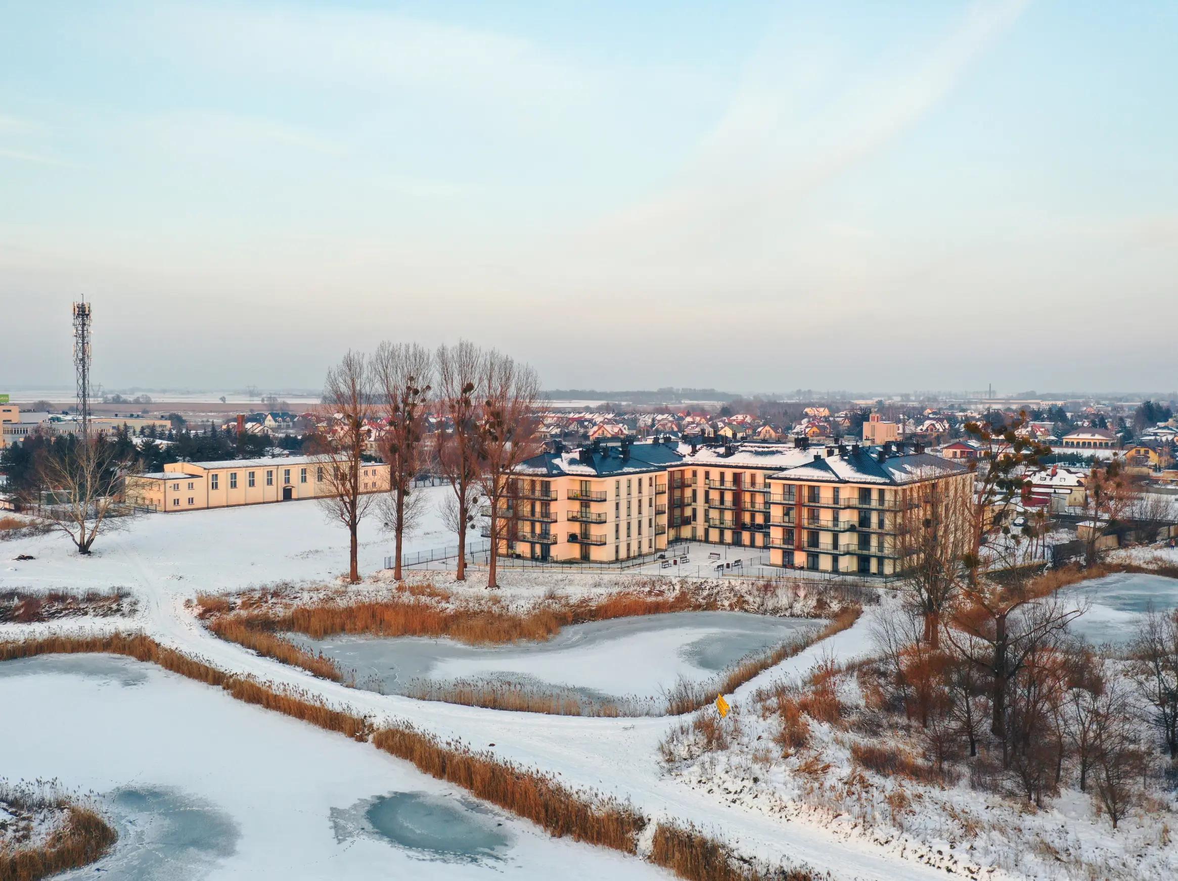 Apartamenty Nad Stawami w Błoniu zlokalizowana na ul. Lesznowskiej 15, charakteryzująca się nowoczesną bryłą budynku, w którym standard wyprzedza oczekiwania nawet najbardziej wymagających osób. W 3-piętrowym budynku zaprojektowano 81 mieszkań o przemyślanych rozkładach i powierzchni od 37 do 74 m2. Do mieszkań na parterze przylegają indywidualne ogródki, natomiast do lokali na wyższych kondygnacjach przynależą sprzyjające relaksowi balkony. Mieszkańcy mają do dyspozycji podziemne miejsca parkingowe oraz wewnętrzny dziedziniec z zielenią i małą architekturą. W bezpośrednim sąsiedztwie znajduje się mnóstwo miejsc do wypoczynku jak i aktywnego spędzania czasu.